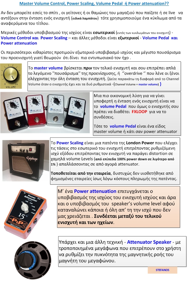 Σήμερα ακόμα και οι καλύτερες εταιρείες , στους ενισχυτές κιθάρας τοποθετούν Power Attenuators με σκάλα (pad switch) ακόμα και στους φορητούς.