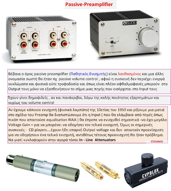 Φυσικά είναι λανθασμένη ορολογία που όμως είναι ένας όρος που έχει επικρατήσει (όπως συμβαίνει και με πολλές άλλες λέξεις) , αφού για να γίνει ενίσχυση απαιτείται τροφοδοσία. Στην ουσία είναι κυκλώματα (ωμικά ή επαγωγικά) passive volume control που συνδέονται πριν έναν προενισχυτή ή μετά έναν τελικό ενισχυτή για τους λόγους που αναλυτικά περιγράφονται παρακάτω.