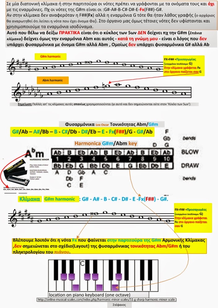 έχω κάνει την αντικατάσταση όλων των ΦΩΤΟΓΡΑΦΙΏΝ Photobucket και επειδή έφυγα τότε μη μπορώντας να απαντήσω έστειλα μήνυμα στον Πέτρο και έκανε τις διορθώσεις που έπρεπε, προς τιμήν του....αλλά καλύτερα διαβάστε τα κόκκινα γράμματα στο προηγούμενο σχόλιο του. Το συμπέρασμα ήταν ότι δεν έχω ιδέα  και ούτε πρόκειται να χρησιμοποιήσω παρτιτούρες για τέτοιες φανταστικές κλίμακες. Εκείνο όμως που κάνω παίζοντας καθημερινά τέτοιες τονικότητες είναι ότι μου έδωσαν την έμπνευση όταν απαιτείται συντήρηση τέτοιας τονικότητας φυσαρμόνικας .